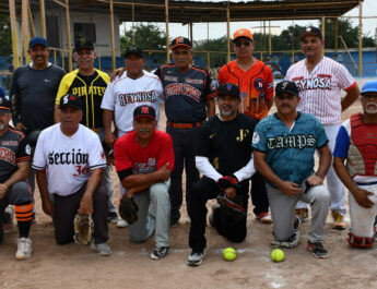 En el torneo de béisbol de Veteranos de 40 y Mas jugando en el campo de la Laguna