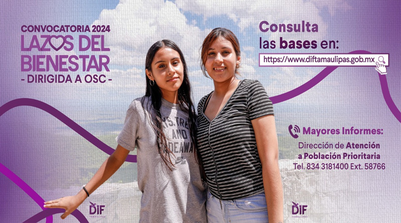 Ciudad Victoria, Tamaulipas. Para apoyar iniciativas de asistencia social, dirigidas a fortalecer el desarrollo comunitario en los polígonos ubicados en Nuevo Laredo, Reynosa, Matamoros, Victoria, Tampico, Madero, Altamira, Mante, Tula y San Fernando, el Sistema DIF Tamaulipas, presidido por la doctora María de Villarreal, lanzó la convocatoria para presentar iniciativas para el programa Lazos del Bienestar.