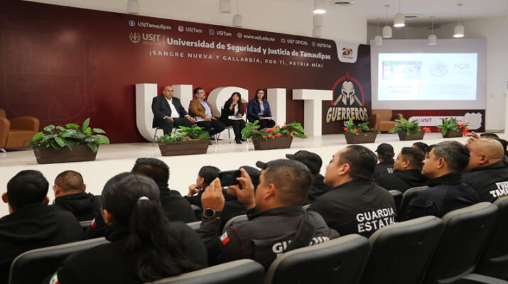 La información fue proporcionada por los Ministerios Públicos de la FGR, Denisse Vázquez Almanza, Mayra Alejandra Rodríguez Rocha y Francisco Puentes Arredondo en el auditorio de la Universidad de Seguridad y Justicia de Tamaulipas (USJT).
