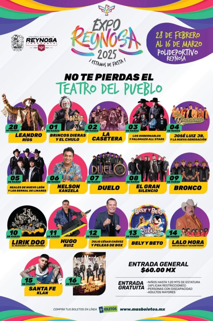 El Presidente Municipal Carlos Peña Ortiz, invita a las familias de Reynosa, del Valle del Sur de Texas y la región, a la Expo Reynosa 2025, este viernes 28 de febrero en el Polideportivo con la actuación de Leandro Ríos en el Teatro del Pueblo.