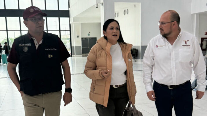 La secretaria de Bienestar federal, Ariadna Montiel Reyes, arribó esta mañana a Reynosa y fue recibida por el secretario general de Gobierno, Héctor Joel Villegas González.