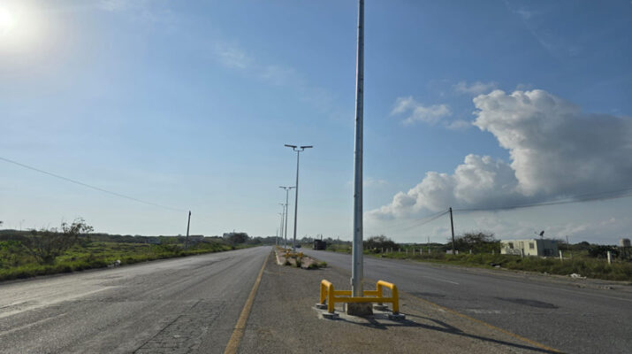Destacó que, esta red de alumbrado público cuenta con 128 postes y 256 luminarias y en la última etapa de la obra, se construyeron las bases de concreto hidráulico para instalar los postes metálicos galvanizados colocando 28 lámparas solares en la parte de Altamira, mientras que en la zona de Ciudad Madero se realizaron las mismas labores con instalación de 34 lámparas para terminar la obra en esta importante avenida.