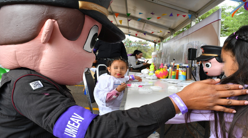 Este año, el stand de la SSPT contó con la participación de la Guardia Estatal de Género, cuyo personal ofreció dinámicas como juegos de preguntas y respuestas, boliche, aros de hula, pintacaritas y espacio de artes visuales.