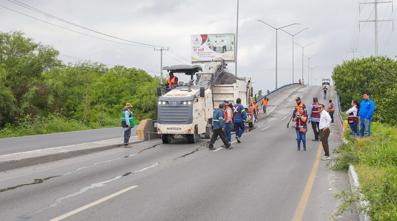 El Presidente Municipal Carlos Peña Ortiz supervisó el desarrollo de la obra de más de 2,250 metros cuadrados del cuerpo Norte del puente, en la vialidad con destino a Monterrey, que fueron recarpeteados por la Secretaría de Obras Públicas del Municipio, a donde fue acompañado por funcionarios del R. Ayuntamiento.
