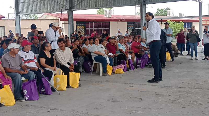 Acompañado por la Directora del DIF Reynosa, Gabriela Rosas Blanco, y el Secretario de Bienestar Social, Héctor Alejandro Olivares Zavala, el edil encabezó la entrega de paquetes alimentarios, artículos de higiene y productos donados por la Secretaría de Economía del Gobierno de la Doctora Claudia Sheinbaum.