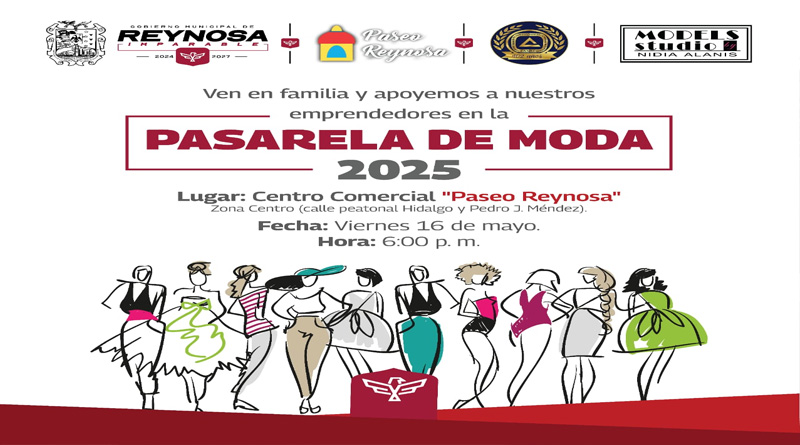 El Gobierno que preside Carlos Peña Ortiz, invita a todas las familias de la ciudad, a disfrutar la «Pasarela de Moda» 2025, que presentan emprendedores locales, este viernes 16 de mayo a las 6:00 de la tarde en Paseo Reynosa.