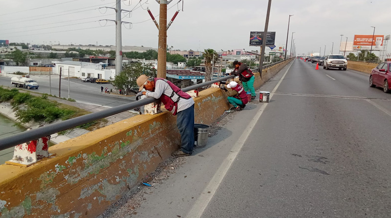 De igual forma, se llevó a cabo el pintado de bases de tubos de protección del Puente Broncos, así como el lavado de señalamientos viales y “caramelos” en el Bulevar Hidalgo, desde Sierra Madre hasta el Seguro Social, y fueron instalados cuatro señalamientos de ALTO en Avenida Central con Poniente 1, en la colonia Las Cumbres.
