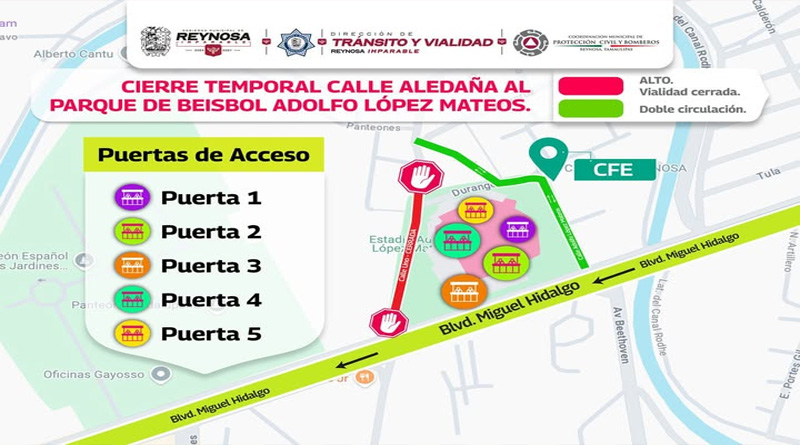 - Aviso por cierre de vialidad: a partir de las 12:00 P. M. se inhabilita la circulación en la Calle 1 contigua al estadio y al panteón; la calle Adolfo López Mateos, adyacente a la CFE será habilitada en doble sentido.
