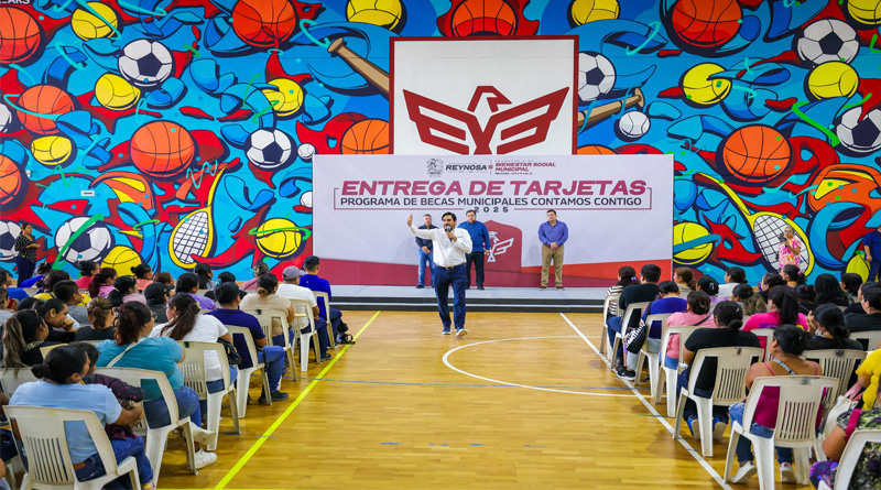 El Presidente Municipal Carlos Peña Ortiz, junto con el Secretario de Educación de Tamaulipas, Doctor Miguel Ángel Valdez García, entregó las Tarjetas de las Becas Municipales «Contamos Contigo» 2025, que apoyan la educación de niños y jóvenes reynosenses que buscan el éxito y el progreso desde las aulas.