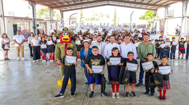 El Alcalde Carlos Peña Ortiz reconoce la participación como Guardián del Orden a los alumnos de educación primaria afiliados al programa Reynosa Imparable, el documento lo recibieron niños y niñas de la escuela primaria Francisco Vázquez Gómez.