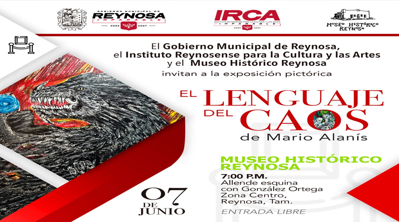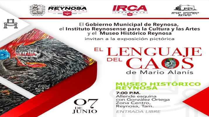 El Gobierno de Reynosa, que preside el Alcalde Carlos Peña Ortiz, invita a la inauguración de la exposición pictórica «El lenguaje del caos», el próximo 7 de junio a las 19:00 horas en el Museo Histórico Reynosa.
