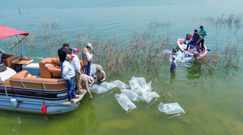 El objetivo de la siembra es repoblar de lobina para reactivar la biodiversidad acuática y para cientos de pescadores deportivos que encuentran en esta presa un espacio de convivencia y arraigo cultural.