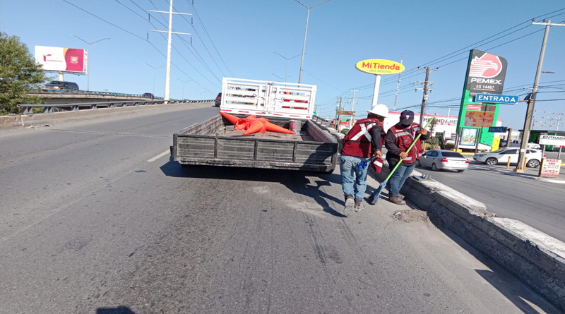 Por indicaciones del Presidente Municipal Carlos Peña Ortiz, cuadrillas de trabajadores de Servicios Públicos están realizando labores de limpieza en el puente vehicular elevado Jarachinas, cuerpo de Oriente a Poniente.