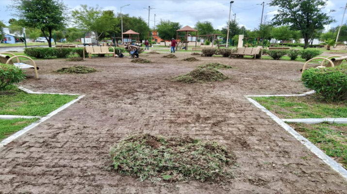 El Alcalde Carlos Peña Ortiz instruyó a la Secretaría de Servicios Públicos a realizar un saneamiento detallado de la plaza de la colonia Riberas de Rancho Grande, donde las cuadrillas municipales trabajaron de manera ininterrumpida para mejorar las condiciones del parque.