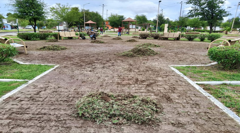 El Alcalde Carlos Peña Ortiz instruyó a la Secretaría de Servicios Públicos a realizar un saneamiento detallado de la plaza de la colonia Riberas de Rancho Grande, donde las cuadrillas municipales trabajaron de manera ininterrumpida para mejorar las condiciones del parque.