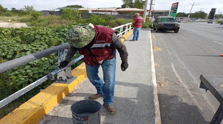 - Pintura de tubos de protección del puente vehicular en avenida Puerta del Sol en el fraccionamiento Puerta del Sol.