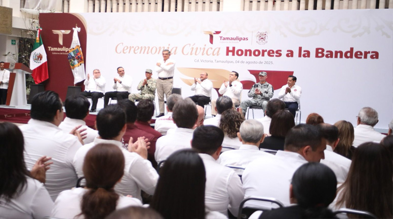 Al dar la bienvenida a la ceremonia cívica, Héctor Joel Villegas González, secretario General de Gobierno, hizo un llamado a las y los servidores públicos para seguir el ejemplo del gobernador Américo Villarreal y demostrar que “servir a Tamaulipas no es una tarea de escritorio, sino una causa que se lleva con orgullo, entrega y honestidad”.