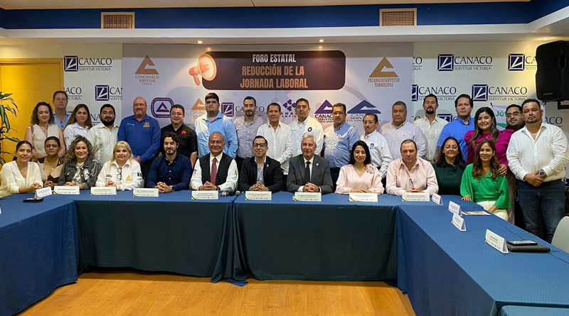 Informando su participación en el Foro Estatal Sobre la Reducción de la Jornada Laboral de 48 a 40 horas, un espacio de diálogo y análisis organizado por la CANACO Servytur Cd. Victoria, la FECANACO Tamaulipas y la CONCANACO Servytur México, bajo el liderazgo del C.P. Federico Arturo González Sánchez, presidente de CANACO Cd. Victoria, y del Lic. Abraham Rodríguez Padrón, presidente de CONCANACO Servytur México.