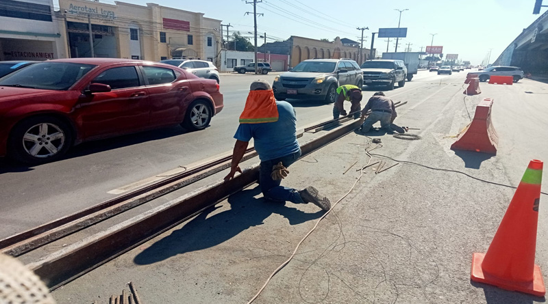 Para mejorar la seguridad en el área, tanto para automovilistas como peatones, se están elaborando pozos profundos para colocación y cimbrado de bolardos metálicos en el inicio del delimitador.