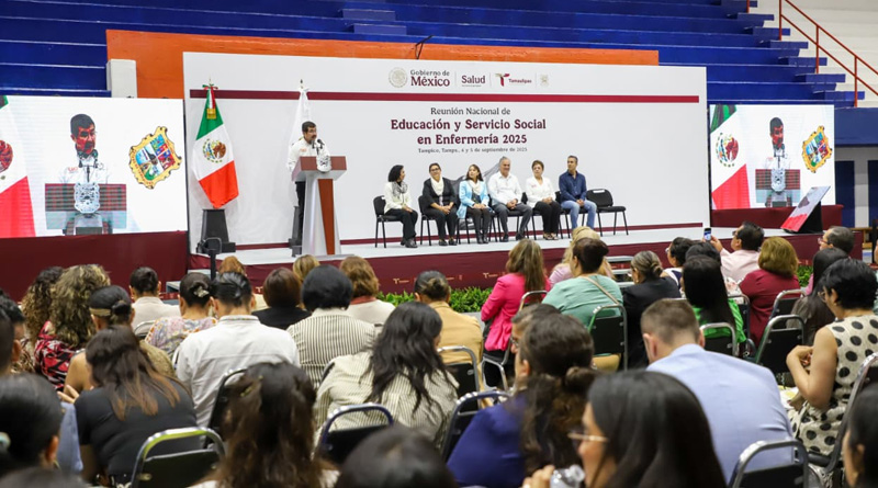 Tampico, Tamaulipas.- El secretario de Salud, Vicente Joel Hernández Navarro, puso en marcha los trabajos de la Reunión Nacional de Educación y Servicio Social en Enfermería, en la que resalta el diálogo, la reflexión y la articulación entre profesionales, instituciones educativas y autoridades del sector salud.