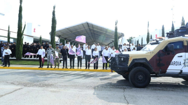 Durante el evento, en el Complejo Estatal de Seguridad Pública, el gobernador dio el banderazo a 14 vehículos blindados tipo Mamba y 15 camionetas pick up Ram 2500, para fortalecer el despliegue operativo de la corporación.