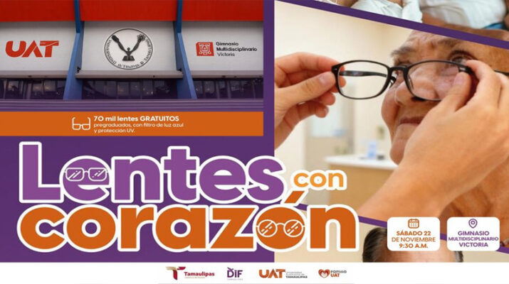 Ciudad Victoria. La Universidad Autónoma de Tamaulipas (UAT) realizará este sábado 22 de noviembre la jornada de evaluaciones visuales y entrega gratuita de lentes titulada “Lentes con corazón», reafirmando su liderazgo en responsabilidad social y su compromiso con el bienestar de la población tamaulipeca.