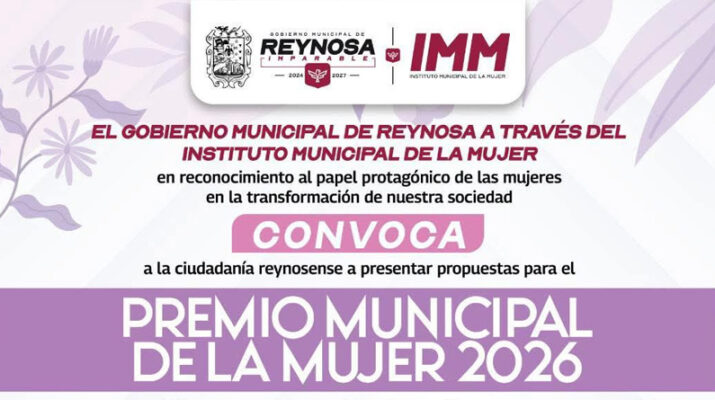 El Alcalde Carlos Peña Ortiz invitó a la ciudadanía a participar en la Convocatoria del Premio Municipal de la Mujer 2026, que reconoce públicamente a mujeres originarias o residentes en Reynosa, cuya labor y trayectoria destacan por su impacto en los ámbitos académico, artístico, deportivo, cívico, social, político, cultural o comunitario.